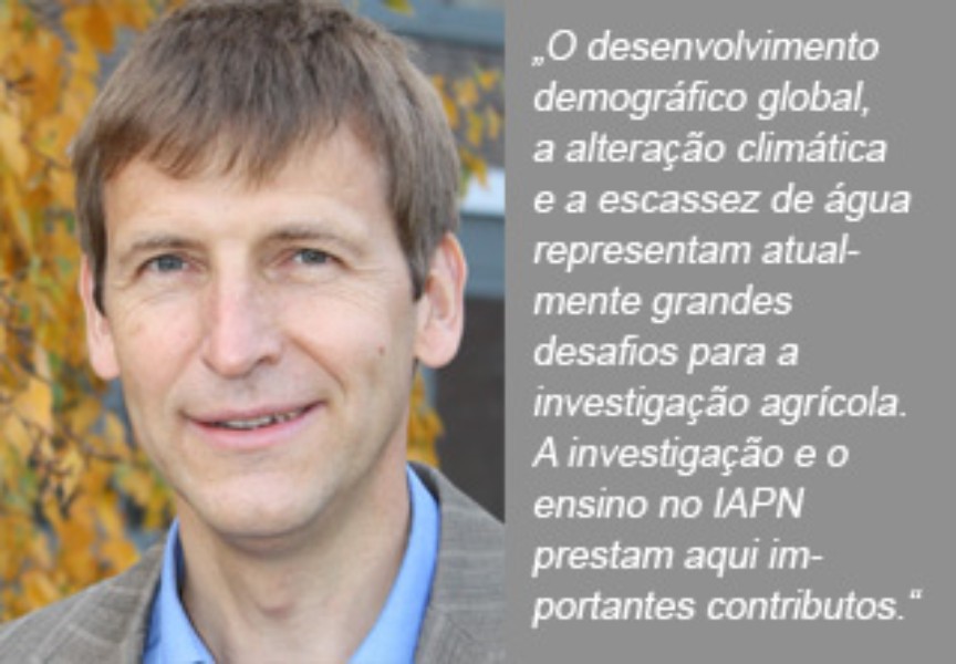"Factores limitadores, tais como a escassez de água ou o stress provocado pelo calor, futuramente, têm de ser tidos ainda mais em consideração na nutrição das plantas. Actualmente, isto é um dos grandes desafios que se põem à nossa disciplina", descreve o professor Dr. Klaus Dittert as mais importantes exigências actuais relacionadas com a investigação. Este assumiu em maio de 2011 a direcção científica do IAPN. "Um ponto de incidência importante da investigação do instituto reside na questão de como, mediante fornecimento optimizado de nutrientes, pode ser aumentada a eficácia no que respeita ao aproveitamento da água das culturas, para que se consigam obter bons rendimentos, mesmo quando a disponibilidade de água é escassa." Entretanto, trabalham no IAPN para encontrar respostas para esta questão, além do professor Dittert o professor júnior Dr. Mehmet Senbayram e outros doutorandos.